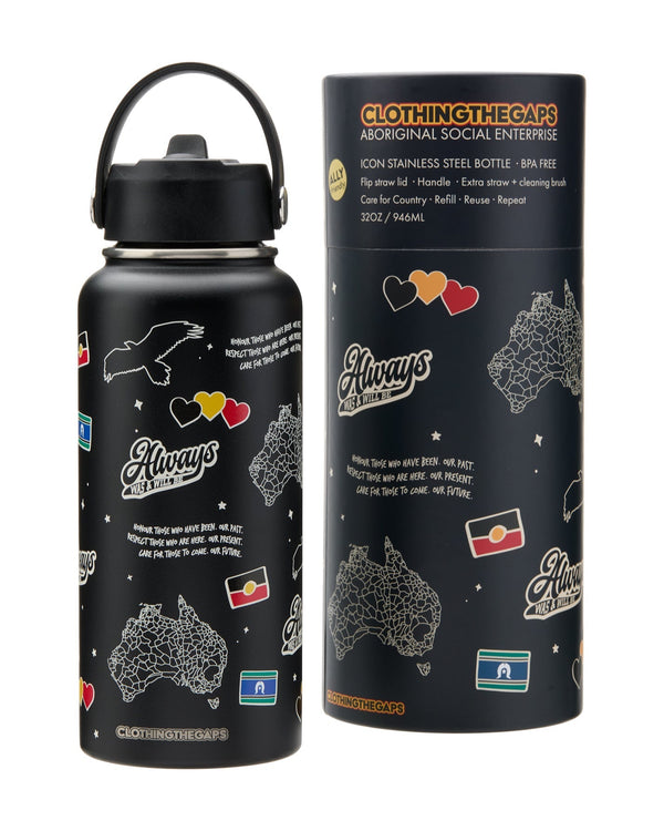 This icon Stainless Steel Water Bottle from Clothing The Gaps holds nearly a litre (946ml / 32oz). Featuring some beloved Aboriginal symbols of resistance and culture including the Aboriginal and...